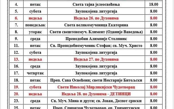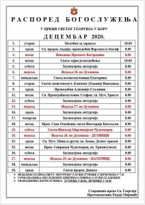 Распоред богослужења за месец Децембар