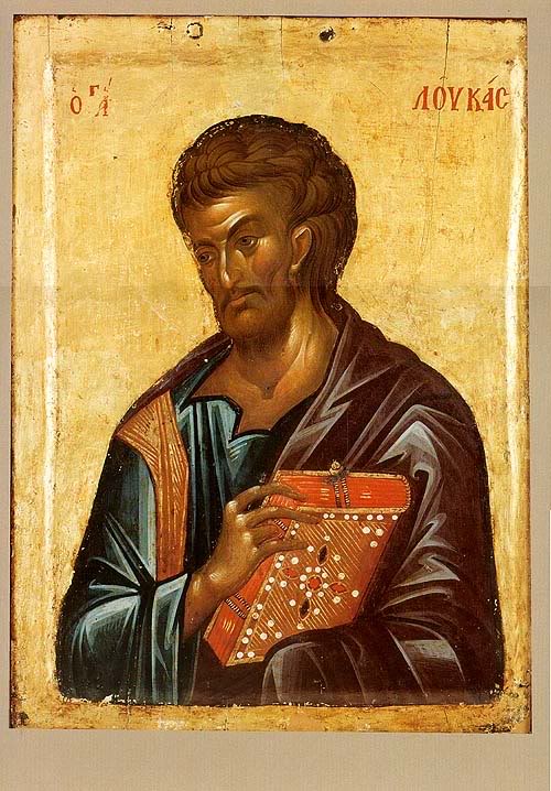 Родом из Антиохије. У младости изучио беше добро грчку философију, медицину и живопис. У време делатности Господа Исуса на земљи, свети Лука дође у Јерусалим, где види Спаситеља лицем у лице, чује Његову спасоносну науку и буде сведок чудесних дела Његових. Поверовавши у Господа, свети Лука би увршћен у Седамдесет апостола и послат на проповед. Заједно са Клеопом видео васкрслог Господа на путу за Емаус (Лк 24, 12-31). По силаску Духа Светога на апостоле Лука се вратио у Антиохију, и тамо је постао сатрудник апостола Павла, с којим је путовао и у Рим, обраћајући у веру Христову Јевреје и незнабошце. „Поздравља вас Лука, љекар љубљени”, пише Колошанима апостол Павле (Кол 4, 14). Не молбу хришћана написао Јеванђеље, око 60. године. По мученичкој смрти великог апостола Павла, свети Лука је проповедао Јеванђеље по Италији, Далмацији, Македонији и другим странама. Живописао икону Пресвете Богородице – и то не једну него три, а тако исто и иконе светих апостола Петра и Павла. Отуда се свети Лука сматра оснивачем хришћанског иконописа. Под старост посетио је Ливију и Горњи Мисир. Из Мисира се вратио у Грчку, где је настављао с великом ревношћу проповедати и људе Христу обраћати, без обзира на своју дубоку старост. Написао је свети Лука Јеванђеље и Дела светих апостола, и обоје посвети Теофилу, кнезу Агаје. Беше му осамдесет четири године, када га злобни идолопоклоници ударише на муке Христа ради и обесише о једној маслини у граду Тиви (Теби) Беотијској. Мошти чудотворне овога дивног светитеља беху пренесене у Цариград у време цара Констанција, сина Константиновог.