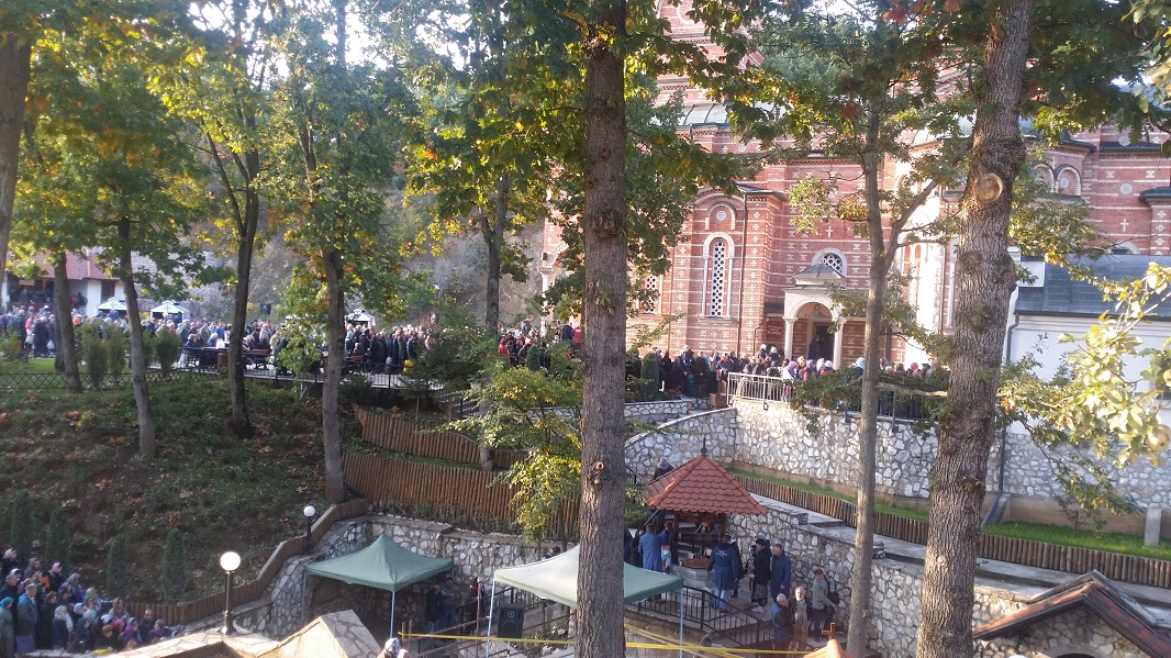 Поклоници су у Покровски манастир код Ђуниса стигли у уторак, 13. октобра, у раним јутарњим часовима, како би, уз мноштво верника, навече присуствовали бденију. После бденија, служен је Акатист а затим и Света Литургија којом је началствовао Његово Преосвештенство Епископ рашко-призренски Г. Теодосије уз саслуживање многобројног свештенства и монаштва.